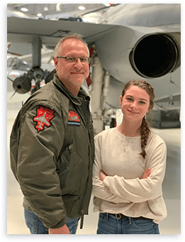 Mr Bodart with his daughter Evyn next to an A6 that Mr Bodart physically maintained while serving in the Persian Gulf. This A6 is currently on display at the Air Museum at NAS Pensacola.
